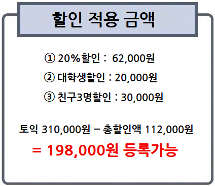나. 친구 3인, 동시 등록시, 각각 3만원 할인