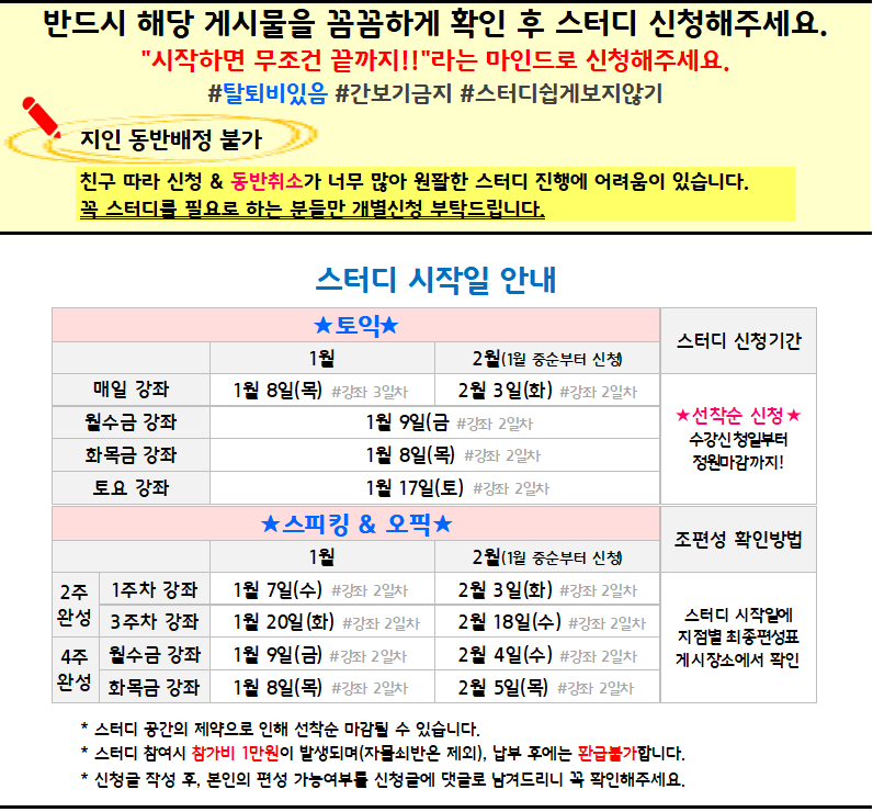 공지사항 청주 2월 스터디안내