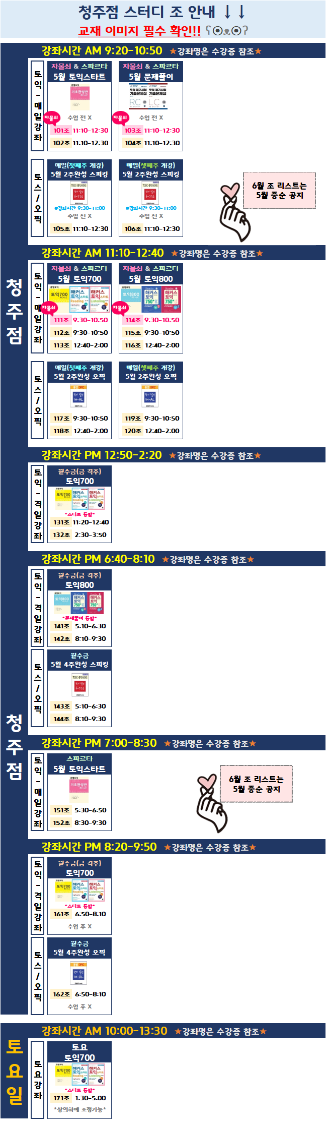 공지사항 청주 5~6월 스터디안내