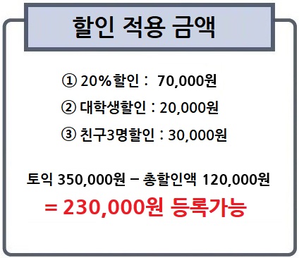 나. 친구 3인, 동시 등록시, 각각 3만원 할인