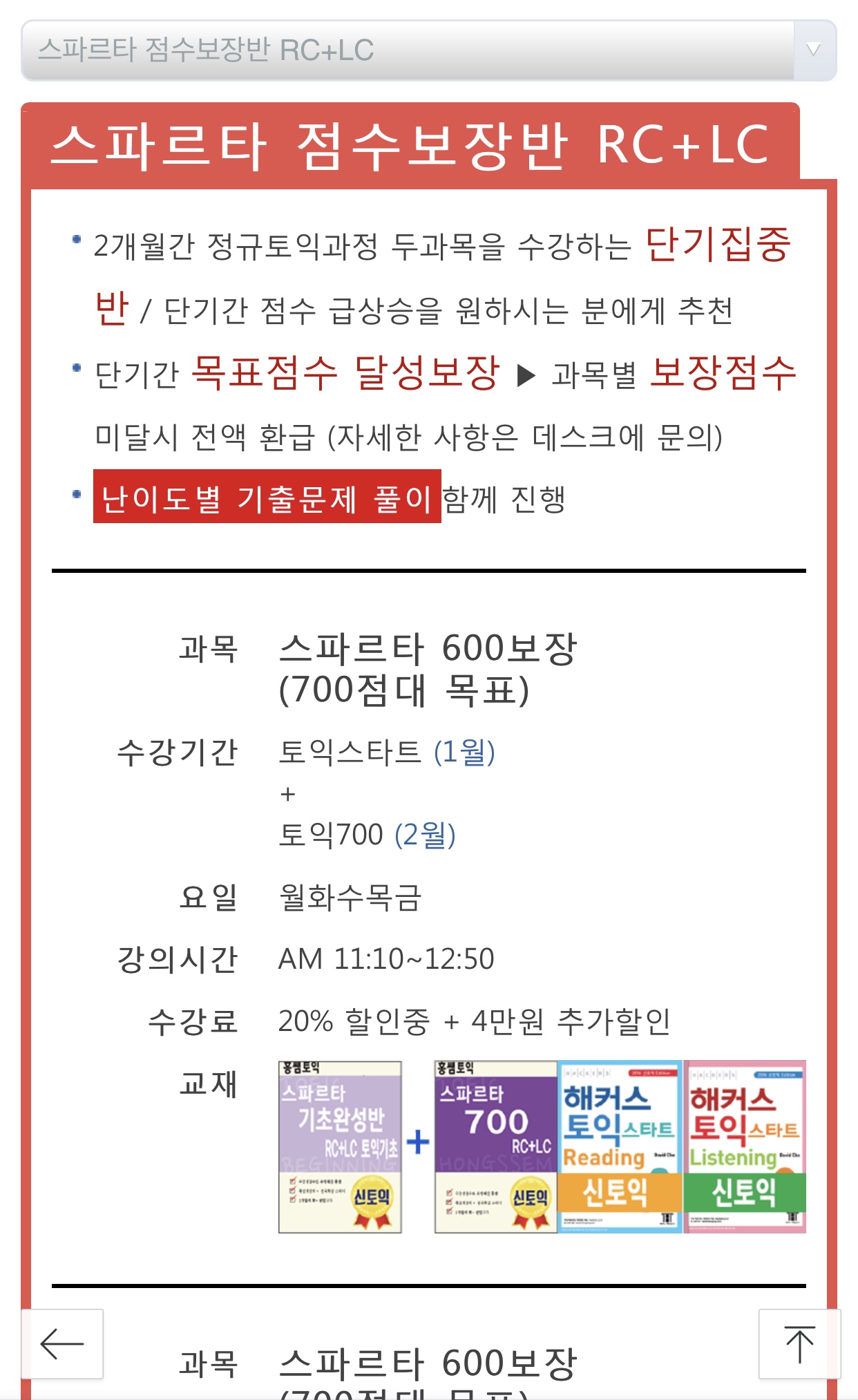 스타트 (1월)+ 토익700(2월) 이렇게 나눠져있어서요!