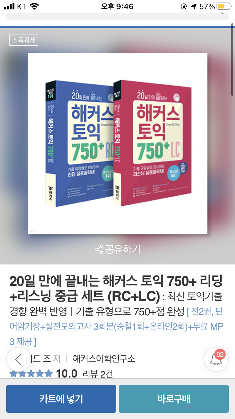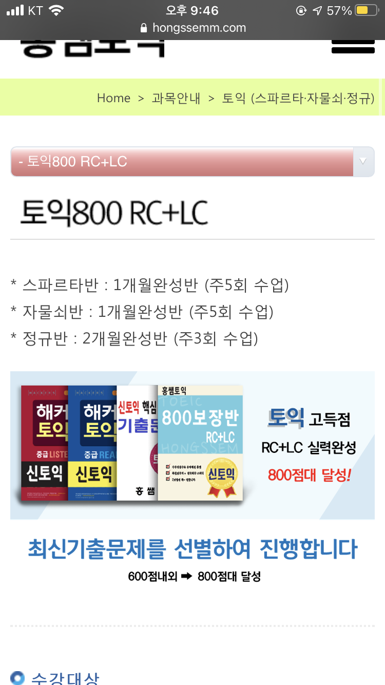800반 해커스 교재가 두번째 사진에 있는 750+ 교재 맞나요?