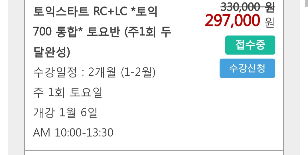 청주점 시간표에는 기초 스타트반 매주 토요일 2개월 과정이 있는데 온라인 수강신청에는 보이지 않고, 스타트+700통합반이라고 되어있는 것 밖에 없는데 둘이 같은 건가요? 저번에도 안보이고 기초+700통합반만 있길래 전화로 문의 들었더니 비슷하다고 하셔서 수강하였는데 결국 수준이 맞지 않았고 교재또한 700교재였으며 강사님도 그냥 700반이라고 부르셨었습니다.. 이번에도 그럴까봐 문의 드립니다
