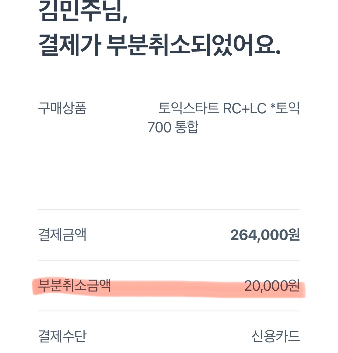 처음 2인할인으로 등록할때도 이미 결제한 상태라서 2만원 부분취소로 도와주셨었거든요