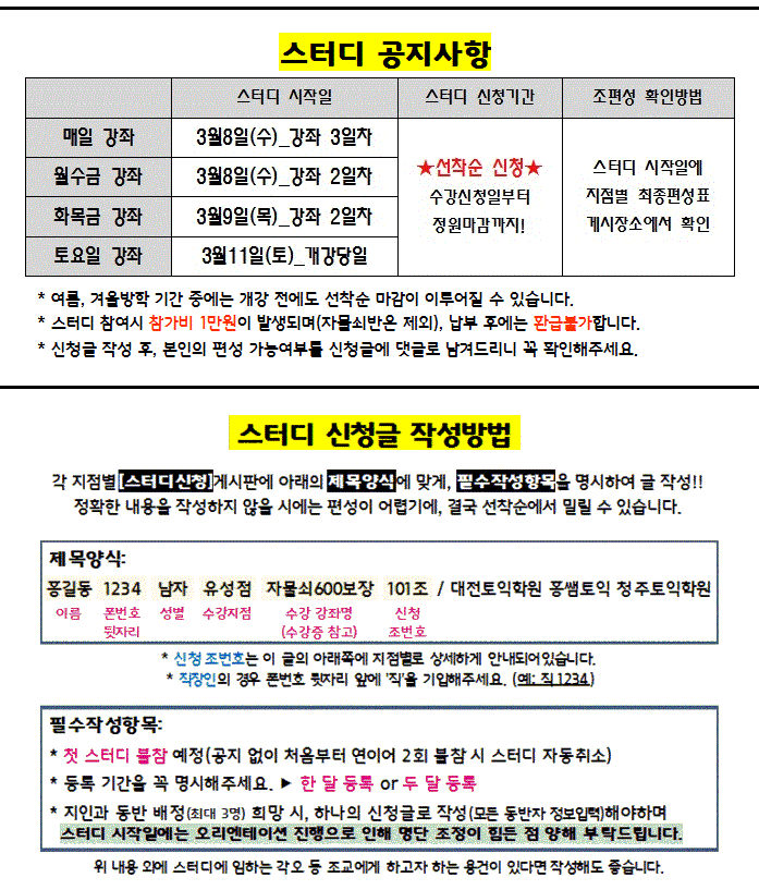 [청주점] 자물쇠 강좌_매일 [스터디필수 + 자습필수] | |||||