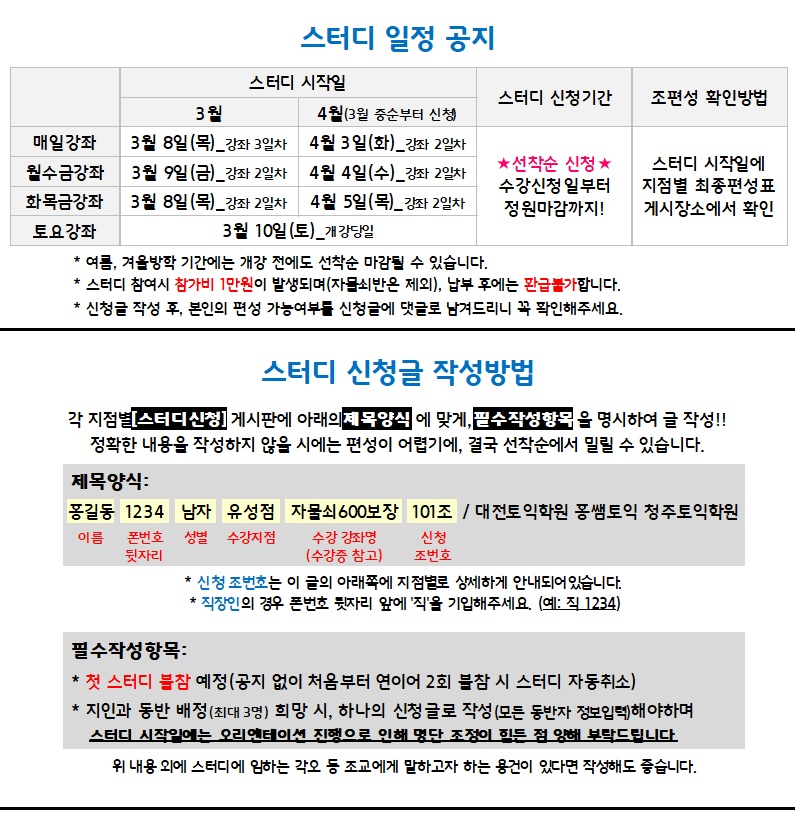 대전 4월 스터디 신청안내