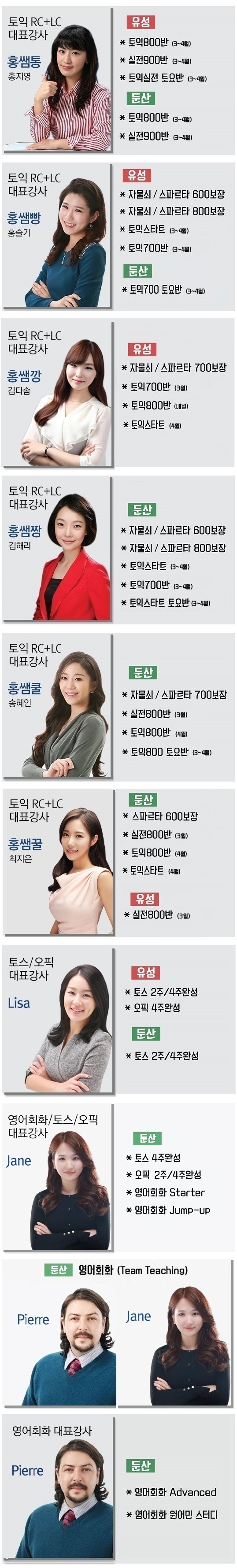 강사별 과목 안내