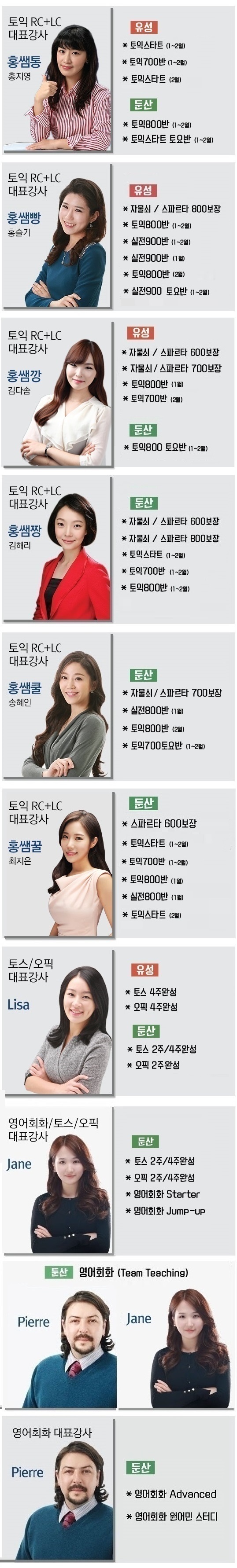 강사별 과목 안내
