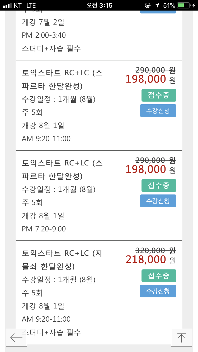 수강 신청을 하였는데요 제대로되었는지 궁금해서요 ㅎㅎ 9:20분시작 토익스타트반이구요 !!