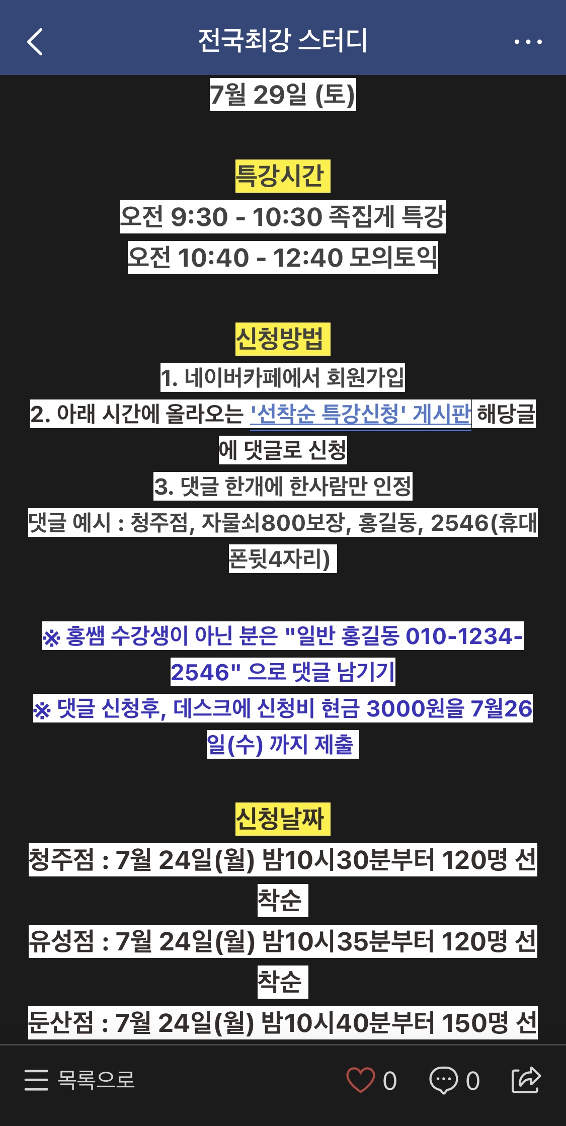 모의토익 신청비는 수강생도 지불하는 건가요??