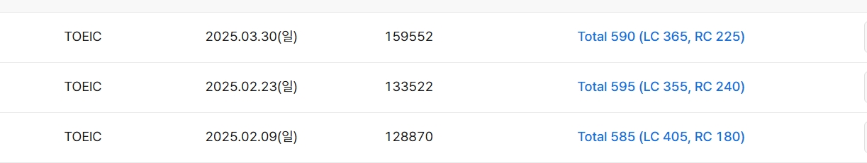 안녕하세요, 현재 토익점수는 590~600점에 맴돌고 있습니다.토익 750+가 목표입니다.