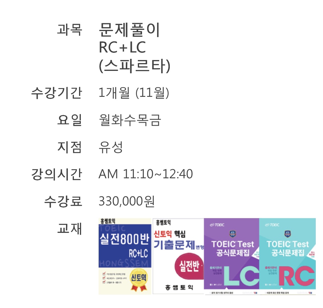 11월 (1개월) 문제풀이반 오전 11시 수업 (유성) 교재가 홈페이지에 나와있는 교재랑 다른가요?