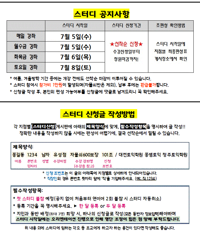 [유성점] 자물쇠 점수보장반_매일 ★스터디 + 자습 필수★ |